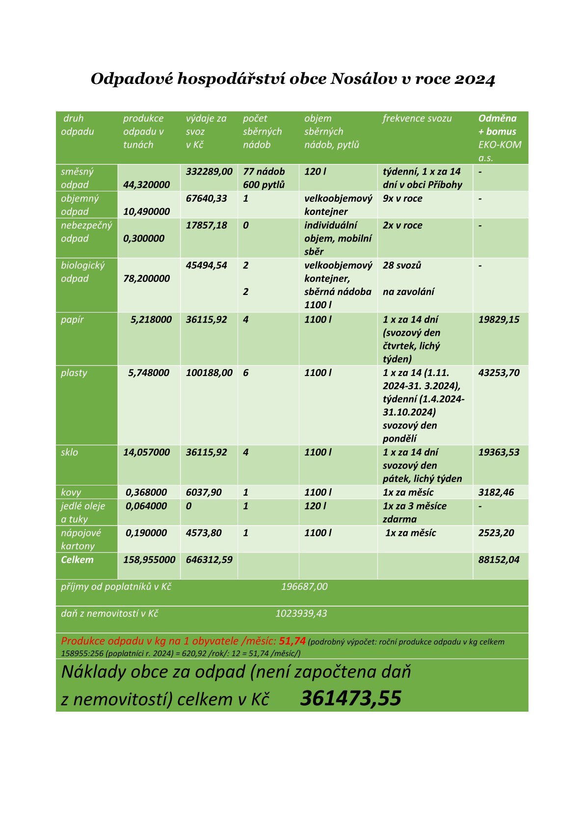 Informace o odpadovém hospodářství obce Nosálov za rok 2024